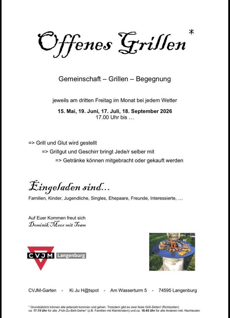 Herzliche Einladung zum offenen Grillen